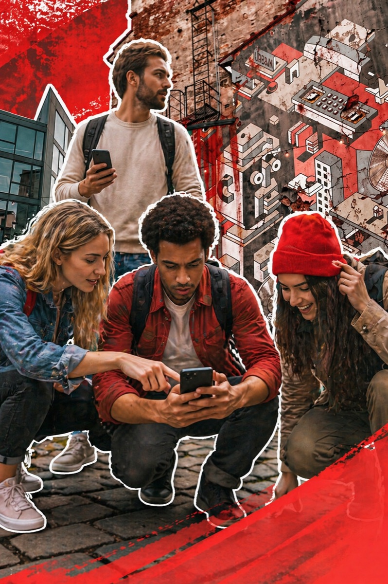 C'est un parcours à pied dans la ville, fait d'indices et d'étapes que tu résous depuis ton téléphone. Ni guide ni groupe. Ton équipe et toi avancez à votre rythme, et l'app vérifie les réponses.